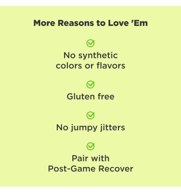 - OLLY Anillos de goma energizantes antes del juego: estas gomitas energéticas previas al entrenamiento ofrecen un impulso de energía celular y te preparan con resistencia para ayudar a que tu entrenamiento valga la pena. *