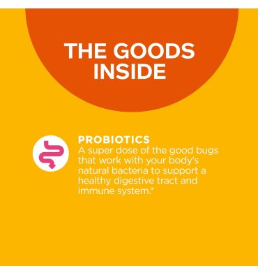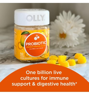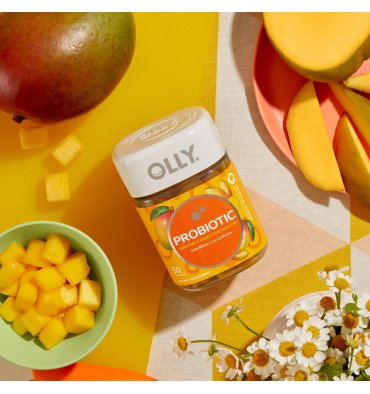 OLLY Probiotic en sabor a Tropical Mango te brinda un impulso amigable de las bacterias buenas.