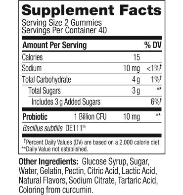 Las gomitas probióticas Probiotic brindan mil millones de cultivos activos excepcionalmente potentes (Bacillus Coagulans) que llegan a su tracto digestivo. donde pueden trabajar para ayudar a que las bacterias saludables prosperen.*