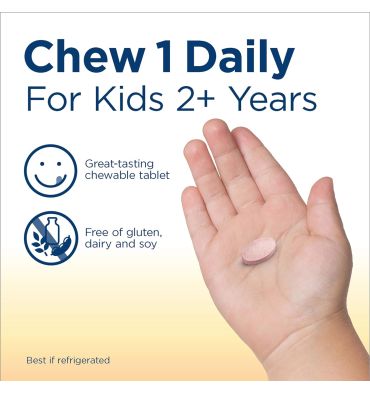 - Probiótico multicepa: cada tableta probiótica masticable para niños contiene una mezcla de 6 cepas probióticas diferentes para reflejar la diversidad natural del intestino de tu hijo