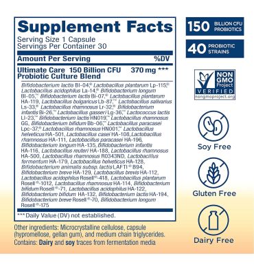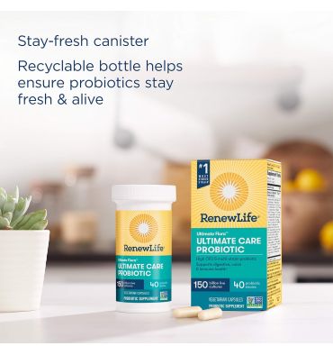 - Cepas más estudiadas clínicamente: Renew Life Ultimate Flora Ultimate Care para adultos es un probiótico alto en UFC con 150 mil millones de cultivos y más cepas clínicamente estudiadas que la marca líder