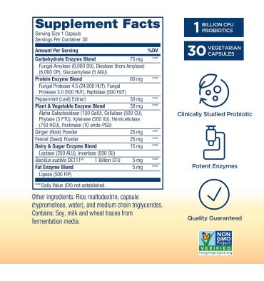 - Calidad garantizada: la calidad de este producto está garantizada hasta la caducidad; Renew Life Digestive Duo Probiotic + Enzymes es un suplemento dietético verificado por el proyecto sin OMG