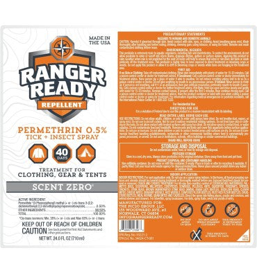 - Gatillo de niebla fina: una botella de 24 onzas de insecticida de permetrina Ranger Ready es suficiente spray para tratar 7 atuendos completos (7 camisas, 7 pantalones y 7 pares de calcetines).