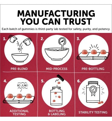 That every nutrient that goes into our gummies is carefully chosen based on extensive research. And just as much care goes into making them delicious.