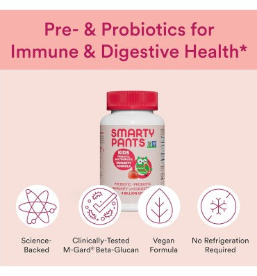 SmartyPants Kids Prebiotic and Probiotic Immunity Formula Strawberry Crème -- 60 Gummies