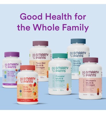 SmartyPants Toddler Multi & Omegas gummies are made with over 15 premium nutrients including omega-3 EPA and DHA essential fatty acids, vitamin D3 for bones, vitamin B12 to support energy metabolism, vitamin A to support eye heath, and folate as methylfolate, all in one delicious gummy serving. SmartyPants are third-party lab tested for purity and potency, so you know what you read on the label is what you get in the bottle. And we're proud to say our partnership with Vitamin Angels provides life-changing nutrients to women and children in the U.S. and globally.