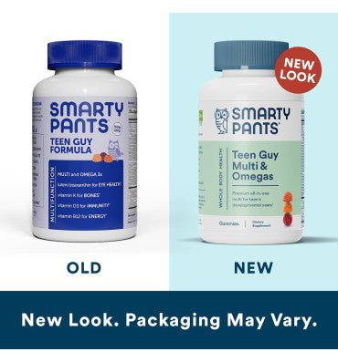 SmartyPants Teen Guy Multi & Omegas gummies are made with over 15 premium nutrients including omega-3 EPA and DHA essential fatty acids, lutein & zeaxanthin for eye health, vitamin K for bone health, vitamin D3 for immune health and vitamin B12 as methylcobalamin for immune health, all in one delicious gummy serving. SmartyPants are third-party lab tested for purity and potency, so you know what you read on the label is what you get in the bottle.And we're proud to say our partnership with Vitamin Angels provides life-changing nutrients to women and children in the U.S. and globally.