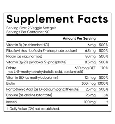 Feel the difference with Sports Research® Advanced B-Complex! Combining the full spectrum of B Vitamins with Choline & Inositol in a Non-GMO Project Verified Plantgel™ capsule— it’s the cellular energy you’ve been looking for and a B-Complex made simple.*