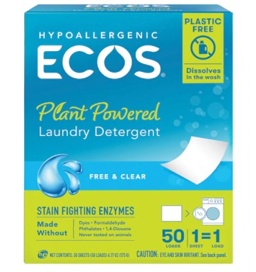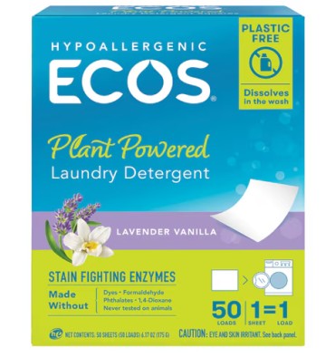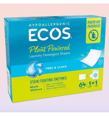 ECOS Sábanas de Detergente Hipoalergénicas para ropa. 1 Hojas = 1 Carga