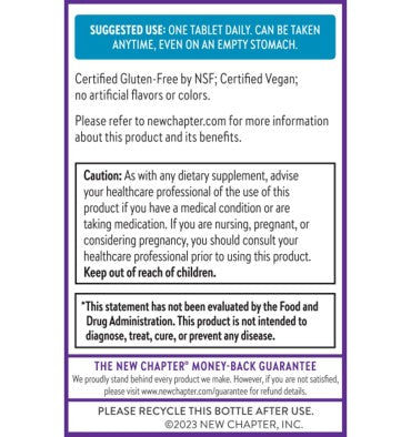New Chapter Vitamina B12, Fermentada de 1,000 mcg, Orgánica, un diario con hierbas integrales + maca adaptógnica para energía natural + células sanguíneas saludables, 100% vegana, sin gluten.