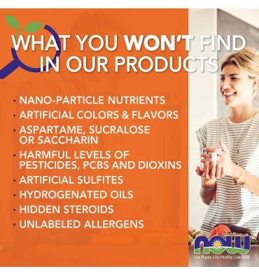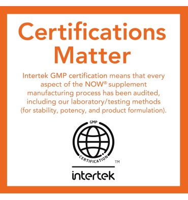 - Calidad garantizada por GMP: la certificación GMP con clasificación A de NPA significa que todos los aspectos del proceso de fabricación NOW han sido examinados, incluidos nuestros métodos de laboratorio/prueba (para estabilidad, potencia y formulación del producto)