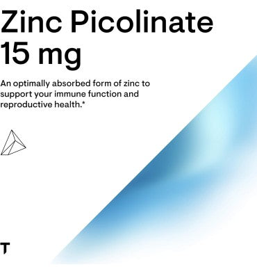 - Zinc: 15 mg de una forma de zinc de absorción óptima para apoyar el bienestar general, la función inmune, la salud de la piel y el tejido conectivo y la salud ocular*